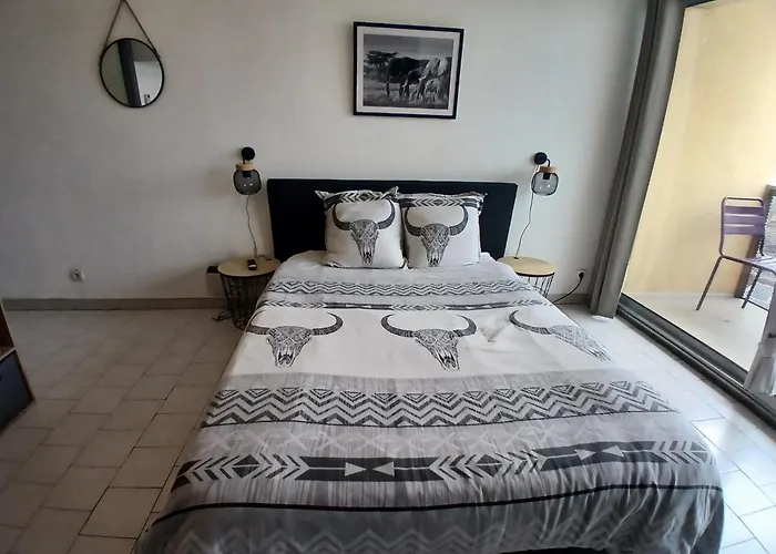 Studio Balcon Parking Dhuoda lägenhet erbjuder ett komplett kök samt rum med balkong, arbetsbord och plattskärms-TV med satellitkanaler. Boendet är beläget 5 minuters promenad från Bois de Espeisses och 1 km från Parc Expo Nîmes.